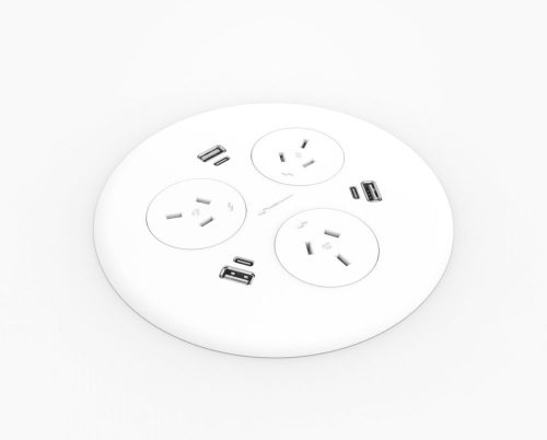 Plug in power at the desk top plus phone charging with the In desk module. The device sits in an 80mm cable port, and backed by a 2 year warranty. -