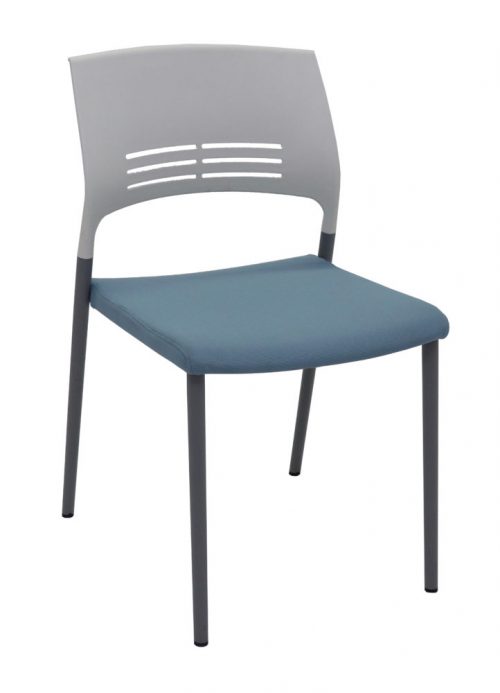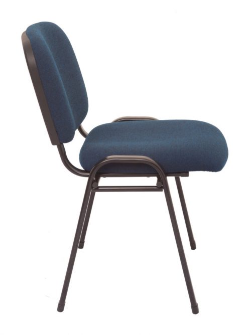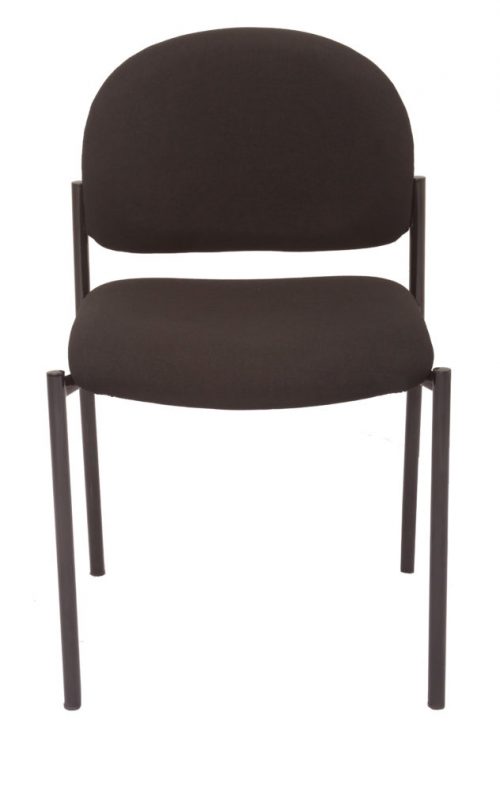 Traditional stacking visitor chair with fabric upholstery and black powder coated 4 leg underframe. Backed by a 3 year warranty. -