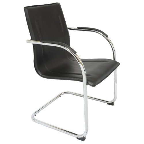 Classic visitor chair upholstered in easy to clean black PU material. With a chrome cantilever frame and arms, with padded armrests. Backed by a 3 year warranty. -