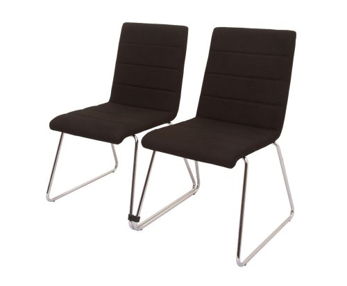 Attractive visitor or lounge chair, with fabric upholstered shell for comfortable sitting and a chrome sled underframe. Backed by a 5 year warranty. -