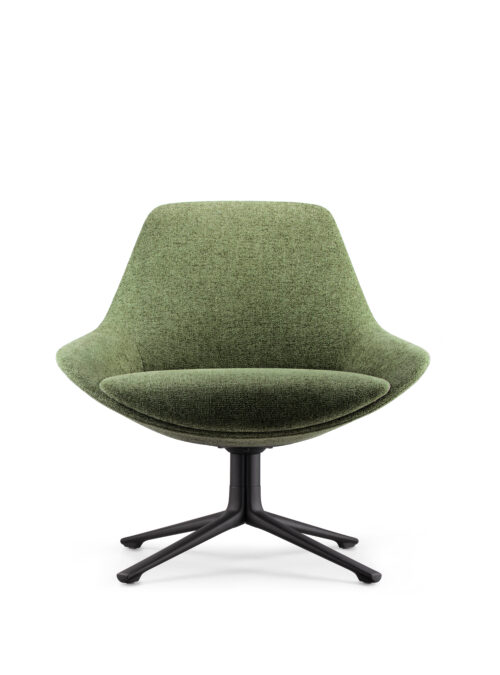 A stylish, lounge-worthy chair featuring plush molded foam and a sturdy steel 4‑leg star base, finished in olive fabric—great for meeting or lounge areas. -