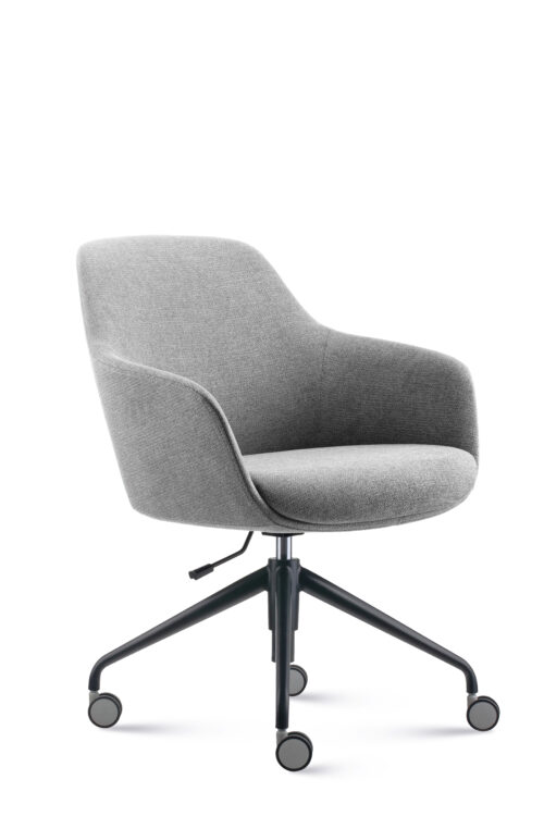 A versatile conference or executive chair available in medium or high back, with polished aluminum frame and optional leather or fabric finish—stylish and professional. -
