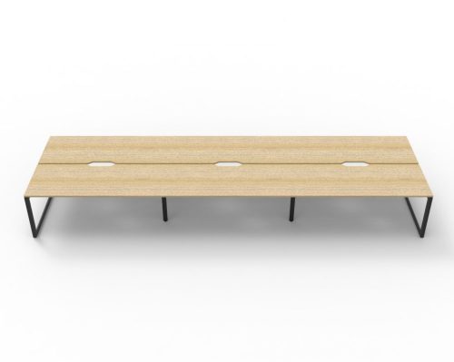 Maximise space and create an efficient working environment with Deluxe Rapid Infinity. 750mm deep enviroboard tops, with scallop for cable access, and a recessed leg to create full leg access in long runs of workstations. The bevelled edge loop leg finishes each workstation run with a premium look. White or oak tops, with black or white frames create a modern, clean look to your fit out. -