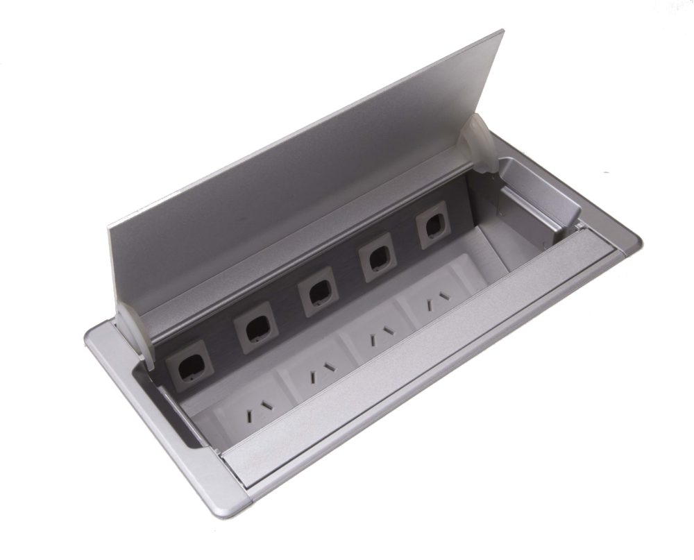 Maintain a clean, tidy look to your boardroom or meeting table with a Boardroom table box. The lid closes to obscure power and data points.