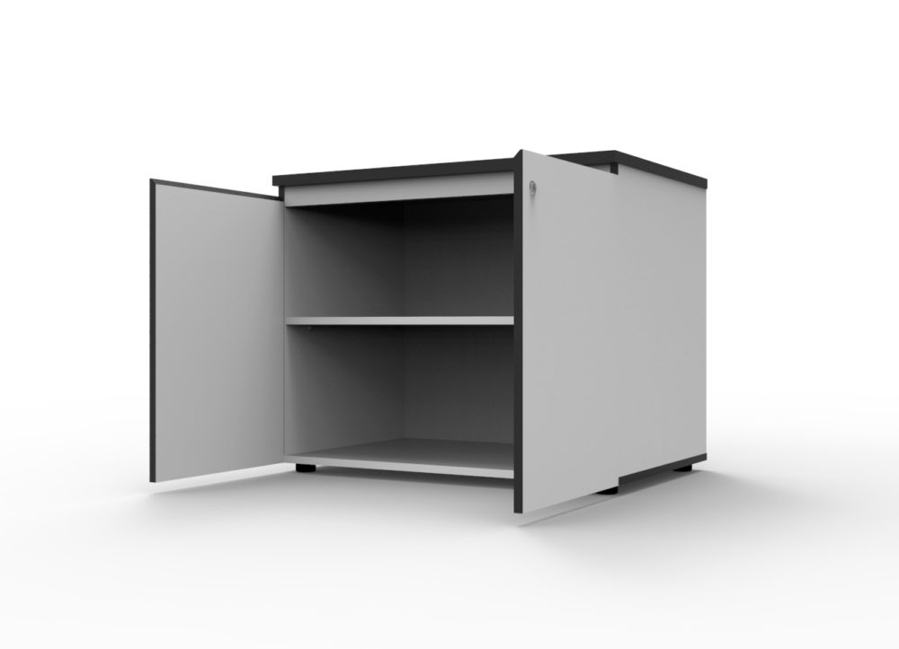 Add stylish storage with Rapid Infinity swing door cupboards. Featuring black rigid edging and a shark nose on the top of the door for easy opening.