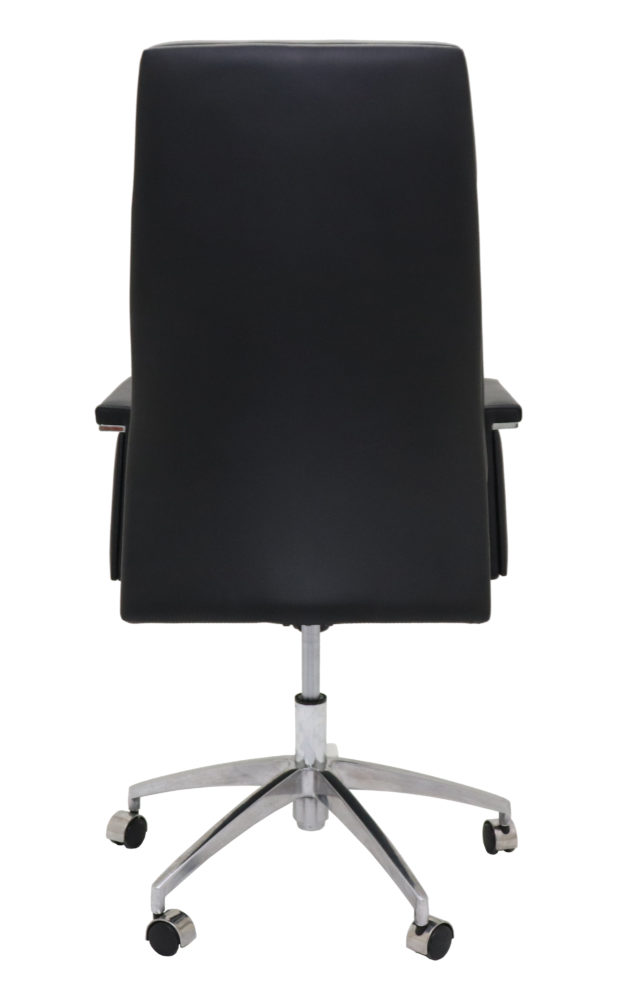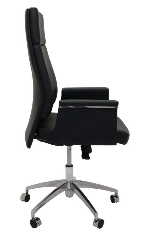 The Pelle high back is a modern high back executive chair offering a combination of design and comfort. With a tapered high back, upholstered arm rest and chrome 5 star polished aluminium base the Pelle has an impressive look.